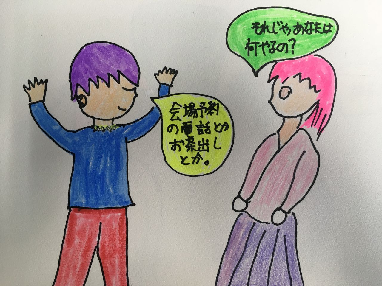 画材:サインペン、蛍光ペン、100均色鉛筆